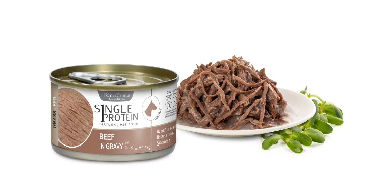 ผลิตจากเนื้อวัวที่กินหญ้าเป็นหลัก (grass-fed) ได้เป็นเนื้อคุณภาพดี อัดแน่นไปด้วยโอเมกา-3 ช่วยบำรุงเส้นขนและผิวหนัง และแคโรทีน ทำให้เนื้อมีรสชาติเข้มข้น อยู่ในน้ำเกรวี่หอมอร่อย โดยไม่ผสมโปรตีนจากแหล่งอื่น ไม่มีการปรุงแต่งสารสังเคราะห์ ไม่ใส่เกลือ ได้สารอาหารและรสชาติจากธรรมชาติเต็ม ๆ อัดแน่นอยู่ในรูปแบบกระป๋อง เพียงเปิดและเท ก็สามารถให้สุนัขอิ่มอร่อยได้ง่าย ๆ